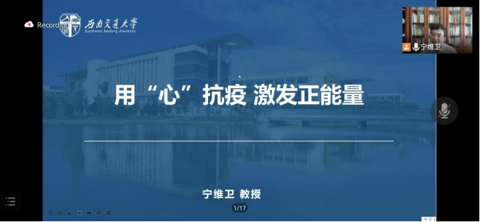 于4月21日下午14:30开始,在线上展开了“用心抗疫 激发正能量”主题讲座。本场讲座是2022年“3.25(善爱我)”系列心理讲座暨“抗疫·安心”行动的第一场,由心理中心陈华主任主持,心理中心宁维卫教授主讲,来自四川多个高校的147名师生参与。