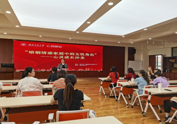 主办,图书馆工会承办的“婚姻情感家庭中的女性角色”——心灵成长沙龙活动在X5501进行。本次活动由心理中心何立群副教授主讲,校工会主席郑江、91免费视频