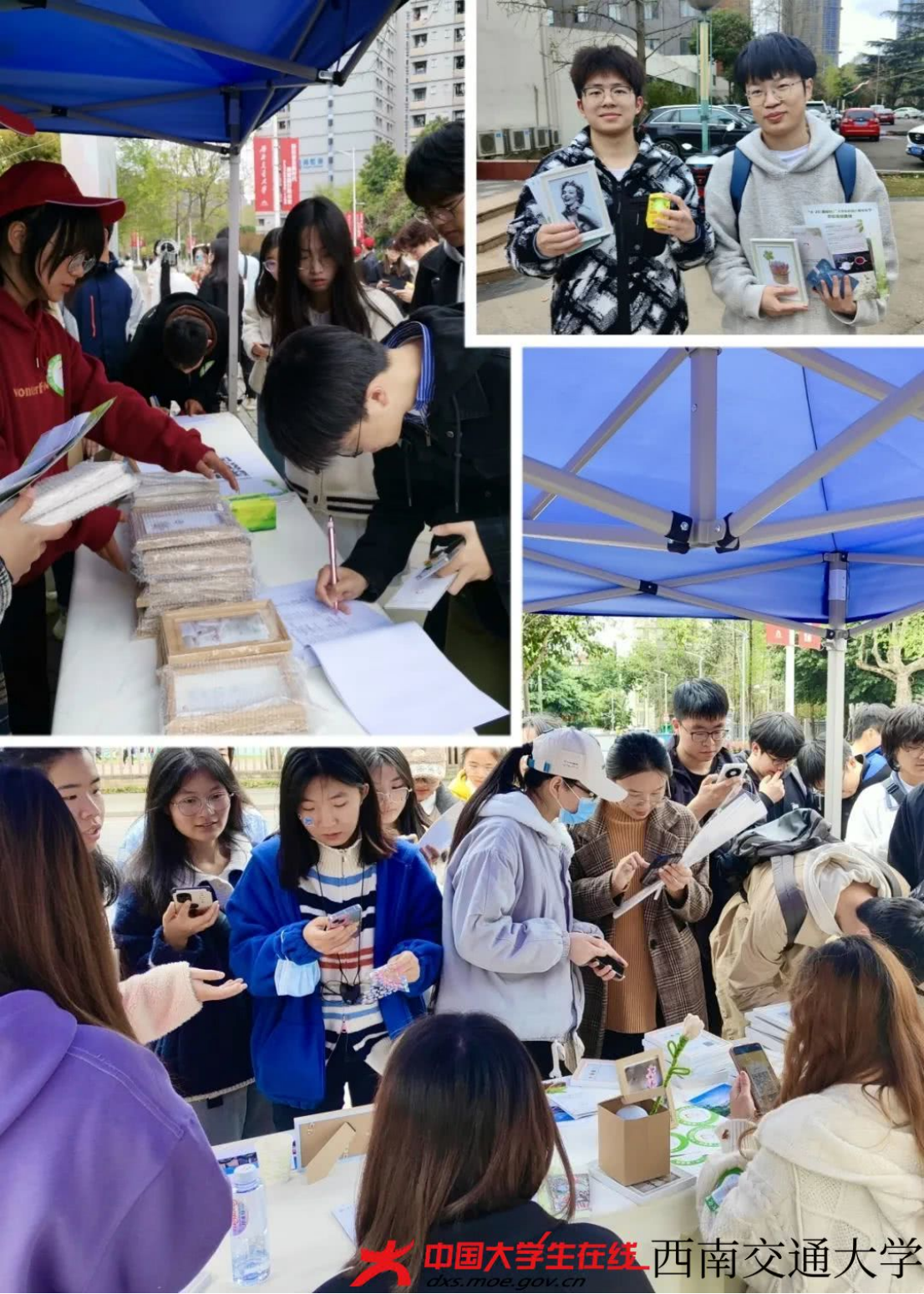 在犀浦校区,李玉梅老师和志愿者们主动引导参与同学们先来到展板前,选景选诗,然后指引同学们在景点去拍照,最后赠送给同学们相框。在九里校区,杨劼老师和志愿者们还与同学们现场讨论在校园中最美的春色,图片的构思,让美好的春色定格在最美的那一瞬间。