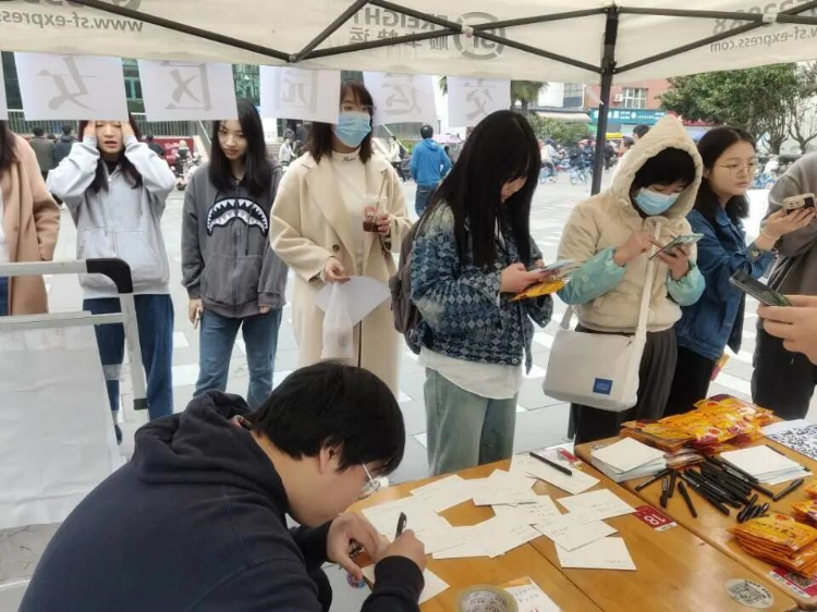 园园和工作人员们一起在二、三食堂前搭建起了温暖小驿站,在工作人员的引导下,同学们都有序地参加活动。一张张明信片上留下的是女生们手写的心愿,留下的是男生们对女生们真诚的祝福。故事到此还没有结束,有的明信片还带着它的使命飞入了男同学的手中,携手完成女生们的心愿。